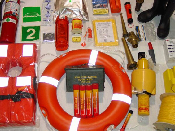 Red handflare, Orange lifesmoke, Manoverboard, Linethrower apparatus, Day and night signal, Personal distress signal